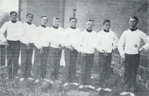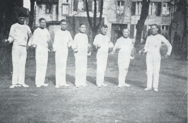 Anfang 1929 kam für uns das Fechten als neue, attraktive Sportart auf. Wir hatten vielen guten Willen, aber wenig finanzielle Mittel. Nach und nach fand sich eine gute Kameradschaft zusammen und betrieb mit großem Fleiß das Fechten. Vile Trainingsstunden mußten von den Sportlern mit der Gesichtsmaske und im weißen Anzug geopfert werden. Nicht die Körperkraft entschied, sondern Kondition, Schnelligkeit, Konzentration und Entschlußkraft. Die notwendige technische Ausrüstung wurde aus dem Reich über die grüne Grenze geschmuggelt. Den weißen Dreß fertigte uns ein Rodener Schneider an. Unser Fechtboden war hauptsächlich der Saal im Vereinshaus. Mit der Zeit hatten wir auch einen Kokosläufer als Fechtbahn angeschafft. Das war aber nur dadurch möglich, daß ujns die Veranstalter von DJK-Werbeabenden, in denen wir mit unserer Fechtriege auftraten, ein Geschenk machten.