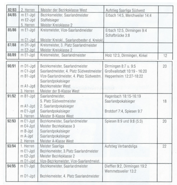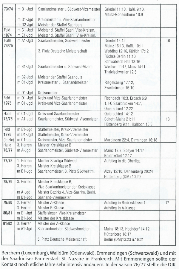 Wie man aus der Tabelle ersehen kann, war das Jahr 1974/75 mit drei Saarlandmeisterschaften,