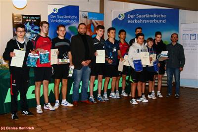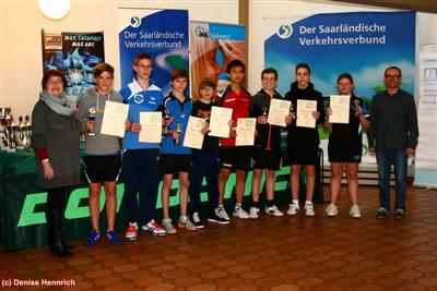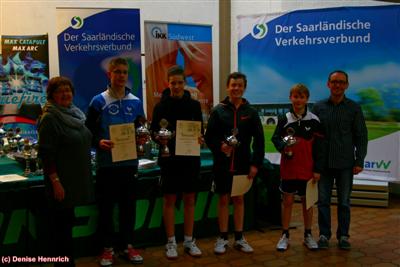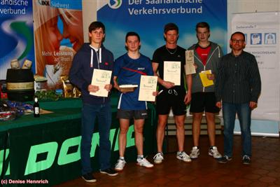 36.DKT 7.saarVV-Cup - Tobias Hermann und Henrik Euteneuer entführen den Titel ins RheinlandSpieler aus drei Verbänden traten hier an und kein Zufall sondern eine überaus starke Vorstellung war es, dass Tobias und Henrik im Finale standen.Vom Viertelfinale aufwärts mussten sie allerdings stets einen Satz abgeben, was für die starke Konkurrenz spricht. Da machten in der Runde der besten acht ihnen die Spielübersicht von Timo Kiefer und die über dem Tisch enorm druckvoll spielende Lea Puhl durchaus das Leben schwer und im Halbfinale wartetetn mit Lillo Bennardo und Dennis Fischer immerhin die Dritten der Saarlandmeisterschaft, welche zwischenzeitlich einen Satzgleichstand und im vierten Satz durchaus auch die Möglichkeiten auf den Entscheidungssatz hatten, allerdings an der souveränen Vorstellung der späteren Sieger nicht entscheidend kratzen konnten. Lillo und Dennis hatten sich eine Runde davor gegen Kevin und Jan-Philipp durchgesetzt. Verdient, aber sehr knapp ging es zu, was wegen der Klasse ihrer Gegner aber auch nicht verwunderlich war. Im oberen Tableau erfüllten Jonas Koob und Bastian Scherer, auf Finale gesetzt die Erwartungen. Gegen Nico Palumbo und Robert Volkmann setzte man sich noch glatt in der Runde der letzten acht durch, auch wenn Nico und Robert hier durchaus mit tollen Ballwechsel dagegen zu halten wussten, doch am Ende fair dem stärken Doppel gratulierten. Sehr eng erwartete man den Ausgang des anderen Viertelfinales zwischen Spiro Leka mit Dennis Komarek und Markus Hillen mit Jonah Sonntag, doch die beiden Rastpfuhler hatten schon in der Runde davor gegen Aaron Emmerich mit Marc Weber gezeigt, dass sie einen wirklich guten Tag erwischt hatten und bezwangen ihre Kontrahenten in drei guten, engen Sätzen. Auch im Halbfinale bestätigten sie ihre gute Form und lieferten Jonas und Bastian ein tolles Spiel, gewannen den ersten Satz und die Favoriten mussten sich deutlich steigern um dann noch als Sieger vom Tisch zu gehen. Im Finale kam Jonas besonders zu Beginn ein um das andere Mal mit seiner starken Vorhand zu Punktgewinnen und Bastians gute Laufarbeit ließ nur wenige Löcher zu, in denen Henrik und Tobias ihre Bälle setzen konnten. Doch je länger das Endspiel ging, desto mehr setzte sich das harmonische Zusammenspiel der beiden Rheinländer durch, welche weniger Fehler machten und sicher in die Schnittstellen des Doppels hinein spielten und es so wirksam unterbanden, dass beide Saarländern ihre großen Qualitäten auszuspielen vermochten. Es ging schon um etwas besonderes, das war gerade in den letzten Spielen allen Beteiligten anzumerken und wenn man sah, wie sehr sich über die schönen Preise gefreut wurde, dann kam die Gewissheit, hier bei einer tollen Veranstaltung dabei gewesen zu sein. Alle Berichte: Doppelklicken auf "Dreikönigsturnier"