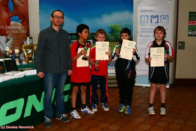 36.DKT Schüler C - Kim-Lukas Obermanns regeltKim-Lukas war der deutlich beste Spieler bei den Kleinsten. Zu Beginn erhielten alle ein kleines Willkommensgeschenk seitens DONIC, denn gerade bei den Jüngsten ist es wichtig, dass sich beim Tischtennis alle als Sieger fühlen und eben das soll das kleine Geschenk verdeutlichen.Elijah Glaab und Elias Fuchs erreichten das Halbfinale, doch dort erwiesen sich die Spieler der anderen Gruppe, auch Dennis Moron als zu stark. Wer die mitunter drollige Freude der Kleinen mitbekommt, der kann erahnen, was in den kleinen Seelchen vorgeht, umgekehrt brauchen sie aber auch Zuspruch, wenn es einmal nicht so läuft, wie sie sich es vorstellen. Da muss man auch vor den Eltern und Betreuern auf dem Turnier den Hut ziehen, die das sehr gut hinbekommen haben.