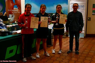 36.DKT Mädchen - Sonja Shor weis sich zu steigernBei den Schülerinnen noch hinter Elena rangierend, wurde sie ohne Niederlage bei den Mächen Erster, was auch eine bemerkenswerte Leistung ist.Wehmut war Anahita anzumerken, die aufgrund einer Verletzung noch länger außer Gefecht sein wird und dennoch für gute Laune sorgte, was hier nicht unerwähnt bleiben sollte. Svenja Tinnes kämpfte unverdrossen, doch das Feld vor ihr war einfach zu kompakt und so blieb am Ende kein zählbares Ergebnis, doch die Erfahrung gegen diese Spielerinnen bleibt und hilft ihr hoffentlich noch besser zu werden. Annika Brosette kam auf zwei Siege und musste lediglich aufgrund des schlechteren Satzergebnisses Lea Puhl, welche Sonja in dieser Konkurrenz noch am ehesten gefährdet hatte, den Vortritt lassen. Elena Selzer wurde Dritte und gegen Mashas kluges Spiel wusste sich eben nur ihre Vereinskameradin zu behaupten. Herzlichen Dank für diese schöne Konkurrenz.