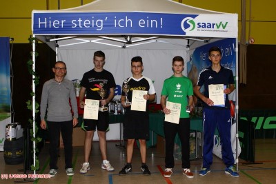 Jüngste machte bereits einen erstaunlich reifen Eindruck. Es war ein starker Auftritt des Vizesaarlandmeisters, der sehr abgeklärt spielte und dem in Julian Gimler, Saarlandmeister des Vorjahres, ein sehr starker Kontrahent gegenüber stand. Julian gelang die Revanche für die Halbfinalniederlage bei den diesjährigen Landesmeisterschaften nicht, wobei seine Leistung auf dem Turnier durchaus ansprechend war. Hinter den Beiden platzierte sich Dennis Moron als guter Dritter und danach bescherten sich Elias, Pawel und Lucas untereinander jeweils einen Sieg. Fünf Viertelfinallisten und der erst siebenjährige Pawel, der schon jetzt, auch wenn der Weg noch weit ist, einen außerordentlichen Tischtennisspieler erahnen lässt, das war schon ein recht eltitäres Feld bei den Jüngsten. Schade, dass wir in der Breite nicht den Zuspruch hatten. 1. Matthias Hübgen (TTC Wemmetsweiler) Ergebnisse der Schüler C als pdf-Datei Schüler Einzel B