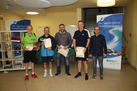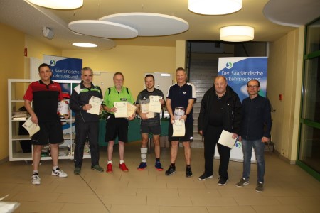 Senioren Einzel Ü40 - Oldies but GoldiesVolles Starterfeld mit 32 Teilnehmern, vor Jahren als wir die Senioren noch in einer Kategorie und Altersklasse in der Turnhalle der Römerbergschule parallel zum Jugendspieltag samstags spielen liessen, da waren wir auf eben rund 30-40 Spieler insgesamt begrenzt. Schön, dass wir mit dem Ausweich auf den Freitag und der Stadtgartenhalle hier in Bezug auf die Kapazität deutlich ausweiten konnten und so sind wir für die Senioren, die von Jahr zu Jahr stärkere Teilnehmerzahlen zu unserem Drei-Königs-Turnier bringen, zukunftssicher.Die Altersklasse Ü40 startete zur Auslosung mit acht 4er Gruppen ins Turnier, bei der sich größtenteils die Favoriten auch durchsetzen und für das Achtelfinale qualifizieren konnten. Knapp ging es zu in der Gruppe A. Hier konnte Timo Endres (TTSV Fraulautern) Roger-Christian Roehrig (TTF Besseringen) den 2.Platz hinter Bernd Schuler (TV Eintracht Cochem) streitig machen. Gleiches schaffte Stefan Guilpain (DJK Heusweiler) gegen José Lopez (SV Eurasburg-Beuerberg) in Gruppe C und zog mit dem Ersten Christian Hinke (TTV Reisbach) ins die nächste Runde ein. In Gruppe G schied Bernd Damde (TTG Dillingen) aus und musste Steffen Welsch (TTC Wemmetsweiler) und Oliver Becker (DJK Schiffweiler) die beiden Qualiplätze überlassen. Im KO-Feld marschierten die 4 Top-Gesetzten relativ mühelos ins Halbfinale, einzig Christian Hinke mühte sich im Achtelfinale gegen Senioren Ü60-Sieger Dietmar Gruhn (DJK Heusweiler), lag bereits 0:2 zurück, drehte das Spiel aber und zitterte ein 14:12 im 5.Satz ins Ziel. Knapp ging es auch in den Partien von Manfred Jochem (DJK Heusweiler) beim 3:2 Sieg gegen Richard Meiers (TTV Rimlingen-Bachem) und Markus Dreiers (TV Merchweiler) Fünfsatzsieg über Steffen Welsch (TTC Wemmetsweiler) im Achtelfinale zu, beide konnten das aber in ihren Viertelfinals nicht erneut an den Tisch bringen und schieden dort aus. So standen die Halbfinals mit den Top-Gesetzten vor dem Vorzeichen "Jung gegen alt", Bernd Schuler konnte ja bereits die Ü65 gewinnen, Dirk Lauer die Ü50, beides Spielklassen, für die Jörg Krauss (SV Mörsbach) und Christian Hinke (TTV Reisbach) Kraft ihres Alters noch gar keine Spielberechtigung haben. Und wie die Setzliste anhand der QTTR-Werte es bereits vorhersagte, so spielten sich auch in der Altersklasse Ü40 die beiden erfahreneren Senioren ins Finale. Dort konnte Dirk Lauer zweimal in Führung gehen, doch Bernd Schuler hatte stets eine Antwort und glich jeweils aus. Der 5.Satz war knapp und ausgeglichen, kein Spieler konnte anfangs mit mehr als 2 Punkten davonziehen. Das gelang Bernd erst zum 7:4 und dann zum 10:7. Die ersten beiden Matchbälle wehrte Dirk hier mit Glück und Geschick ab, beim 9:10 traf er den Ball dann einmal nicht richtig und das Spiel war knapp, aber auch verdient für Bernd Schuler gewonnen. Gratulation an alle Sieger der Senioren Ü40 und Dank an alle, die mit dabei waren. Die Konkurrenz hat Spaß gemacht und Lust auf mehr im nächsten Jahr. Platzierungen1. Bernd Schuler ( TV Eintracht Cochem )2. Dirk Lauer ( TTF Besseringen ) 3. Jörg Krauss ( SV Mörsbach ) 3. Christian Hinke ( TTV Reisbach ) 5. Daniel Jochem ( TT Schaumberg Theley ) 5. Markus Dreier ( TV Merchweiler e.V. ) 5. Manfred Jochem ( DJK Heusweiler ) 5. Oliver Becker ( DJK Schiffweiler )