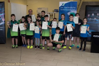 Doppel-Mix aus Niederlinxweiler und Altenwald bestimmt die Konkurrenz30 Mädchen und Jungs spielten im Schüler-Doppel U15 und liessen bereits in diesem Jahr erahnen, was da in den nächsten Jahren im saarVV-Cup so für Doppelpaarungen auf uns zukommen können.Niederlinxweiler und Altenwald stellen die beiden Top-Doppel, jedoch im Mix beider Vereine. Benjamin Bier (TTC Altenwald) hatte in Marwin Rehmer (TTV Niederlinxweiler) seinen kongenialen Spielpartner ebenso gefunden wie die im Finale unterlegenen Oliver Bier (TTC Altenwald) und Nils Einloft (TTV Niederlinxweiler). Zuvor mussten beide Paarungen die Halbfinalhürden überstehen, was den späteren Siegern mit einem glatten 3:0 über Lara Truar und Jule Remark (TTG Werbeln) auch ebenso eindrucksvoll gelang wie Nils und Oliver, die Julian Demange und Jean-Luca Schroeder (TTC Hülzweiler) dabei einen Satz abgeben mussten. Nicht in die Halbfinals schafften es die Reisbacher Kombination Elias Altmeyer mit Johannes Heckmann sowie David Schäfer und Devu Wu, die Fremersdorf-Gerlfanger Nachwuchshoffnungen mit Mika Bintz und Marius Lorang sowie die Zusammenstellung vom TTSV-Fraulautern und der DJK Roden, bestehend aus Jolina Morres und Joel Endres. Eine schöne Doppelkonkurrenz in diesem Jahr, zu der immerhin 11 Vereine aus der Region Schülerinnen und Schüler U15 an den Start schickten. 1. Benjamin Bier / Marwin Rehmer (TTC Altenwald / TTV Niederlinxweiler) 2. Nils Einloft / Oliver Bier (TTV Niederlinxweiler / TTC Altenwald) 3. Lara Truar / Jule Remark (TTG Werbeln) 3. Julian Demange / Jean-Luca Schröder (TTC Hülzweiler) Ergebnisseite des Schüler-Doppel U15 beim 42.Drei-Königs-Turnier Finalspiel des Schüler-Doppel U15 beim 42. Drei-Königs-Turnier im Youtube-Channel der DJK Roden Abt.TT 42.DKT - 13.saarVV-Cup