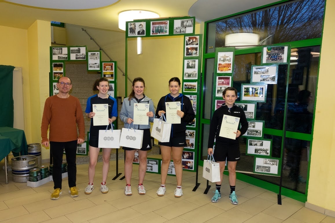 Die Dominanz der KlasseIm Wettbewerb der Damen A gesellte sich zu den doppelten Starts der vier Halbfinal-Ladies aus der B-Konkurrenz noch Laura Spork vom TTC Altenwald hinzu und -on top- mit Isabelle Schütt und Elisa Kohlen vom 1.FC Saarbrücken Tischtennis zwei Damen, die punktemässig in anderen Gefilden beheimatet sind. Doch wie so oft liegt ja der Reiz des Spiels auch darin, mal gegen die Spielerinnen des Kaders oder aus deutlich höheren Ligen, in diesem Fall der Regionalliga, zu spielen und wir erlebten eine Konkurrenz, bei der sich gerade hinter den beiden Favoritinnen so einiges spannendes tat.In der 3er Gruppe um Elisa Kohlen konnte Nadine Blau (TTSV Fraulautern) ihr immerhin einen Satz abnehmen und mit ihrem eigenen 2. Platz vor Laura Spork (TTC Altenwald) zog Nadine ebenfalls ins Halbfinale ein. Parallel gab Isabell Schütt in 9 Sätzen nur 30 Punkte in den Gruppenspielen ab und wurde damit ihrer Favoritenrolle schonmal gerecht. Dahinter musste Lara Truar (TTSV Fraulautern) an diesem Tag Michelle und Jil den Vortritt lassen was die Vergabe des 2.Halbfinal-Platzes anging. Und hier stellte Michelle das Final-Ergebnis der Damen-B Konkurrenz auf den Kopf und revanchierte sich sofort mit einem glatten 3:0 Erfolg über Jil. Während Nadine im ersten Halbfinale die Überlegenheit von Isabelle deutlich zu spüren bekam, konnte Michelle gegen Elisa in zwei knappen Sätzen gut mithalten, den dritten gar gewinnen. Doch die Klasse von Elisa war am Ende ausschlaggebend für ihren Sieg. Im Finale konnte Elisa zwar einen knappen Satz für sich entscheiden, die drei gewonnen Sätze von Isabelle waren aber klar und deutlich und sie holte sich verdient den Titel beim 45. Drei-Königs-Turnier. Platzierungen1. Isabelle Schütt (1. FC Saarbrücken-TT)2. Elisa Kohlen (1. FC Saarbrücken-TT) 3. Michelle Butzke (TTC Gersweiler) 3. Nadine Blau (TTSV Saarlouis-Fraulautern) Ergebnisseite des Damen Einzel A beim 45.Drei-Königs-Turnier Finale des Damen Einzel A im Youtube-Channel der DJK Roden Abt.TT |