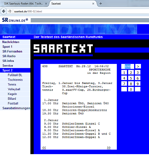 Im Veranstaltungskalender des Saartext vor Turnierbeginn: ![]()