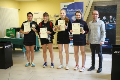 Die Losfee verschaffte im Viertelfinale den beiden Fraulauterinnen Nadine Blau und Jolina Morres ein Freilos, während Lilly Lohr (gegen Martina Frisch) und Annabelle Tan (gegen Sabrina Wolf) noch Hausaufgaben lösen mussten, um ins Halbfinale einzuziehen. Im Halbfinale sollte Annabelle gegen Jolina keine Probleme haben, während sich das Match zwischen Lilly und Nadine zu einem wahren Fünfsatzkrimi entwickelte. Zweimal konnte Nadine in Satzführung gehen, alle Sätze in der Verlängerung, ehe Lilly im 5. Satz einfach etwas glücklicher agierte und mit 11:5 ins Finale einzog. Dort wartete mit Annabelle eine Gegnerin, die sie bereits von der Gruppe her kannte, doch im Finale konnte Lilly nicht noch mal so Paroli bieten und musste am Ende Annabelle zu einem verdienten Sieg der Damen-B-Konkurrenz gratulieren. Immerhin hatte es Lilly als 4.-Gesetzte der Teilnehmerinnen-Liste vor die beiden Fraulauterinnen aufs Treppchen geschafft und darauf darf sie bei aller Enttäuschung über das verlorene Finale zurecht stolz sein. Nadine und Jolina haben eine insgesamt gute Konkurrenz gespielt, bei Nadine hätte es um ein Haar fürs Finale gereicht.