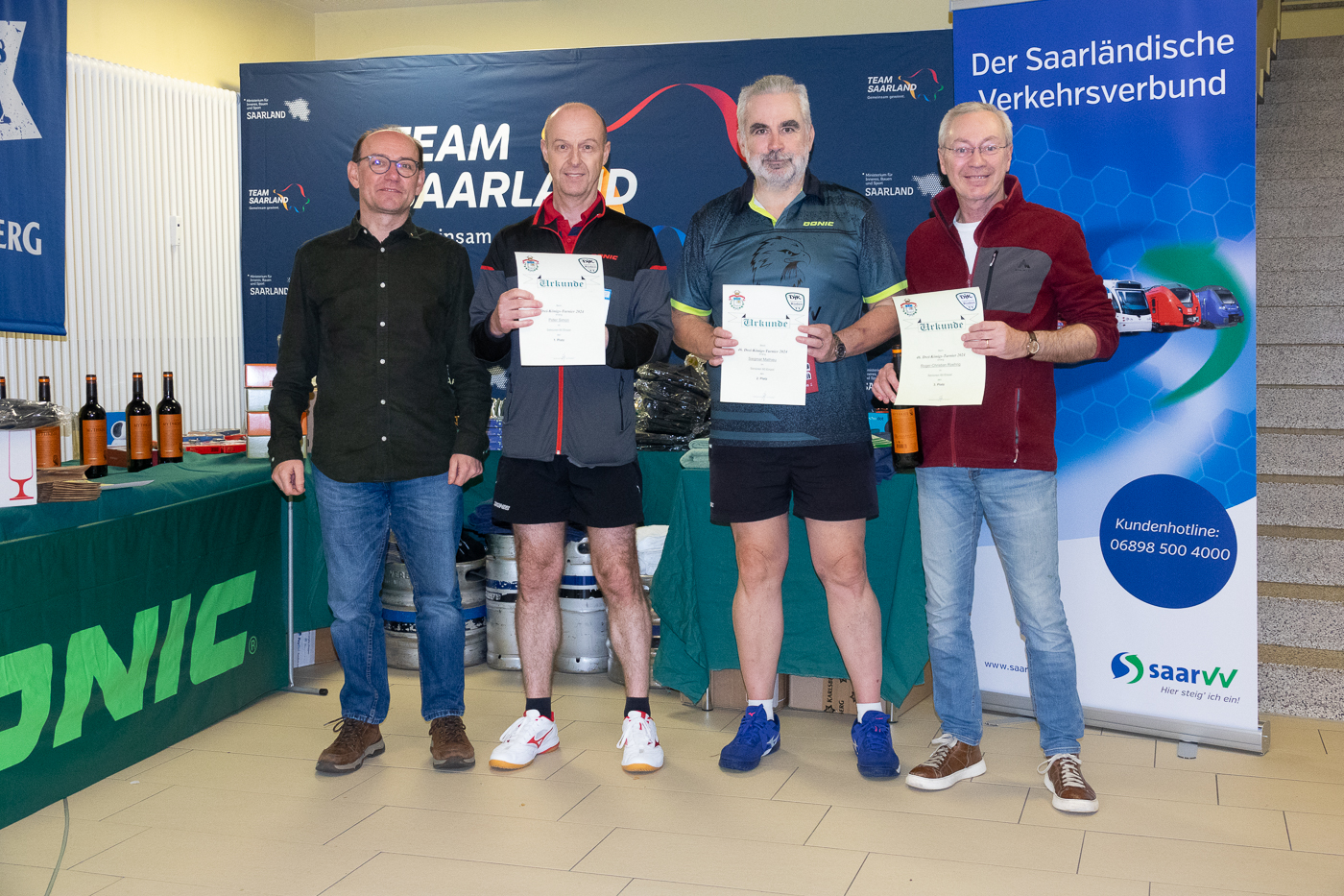 Ging es zwischen Georges Kalny und Reinhold Meder über fünf Sätze, gaben sich weder Roger Roehrig noch Gruppensieger Siegmar eine Blöße und fuhren klare Erfolge ein.