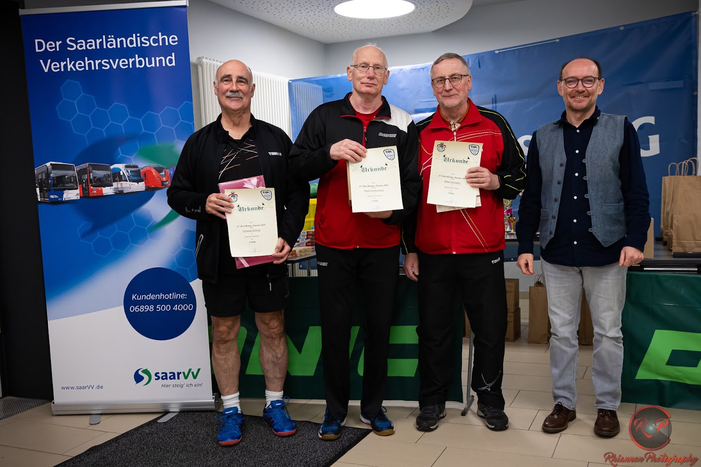 In der kleinen aber feinen Konkurrenz war es Martin Schackmann, der hier als Sieger hervorging. Schon einige Male war Martin kurz davor gewesen und hat sich den Titel mehr als verdient. Gut gelaunt und nach wie vor sehr spielstark war er jedoch heilfroh, das knappe Endspiel um den Titel gegen Christoph Schmidt, der sich als gleichwertiger Gegner entpuppte, nach 0:2-Satzrückstand sehr knapp im Fünften nach Hause zu fahren. Zwei Punkte fehlten Christoph am Ende, um einen gleichfalls souveränen Auftritt zu krönen.